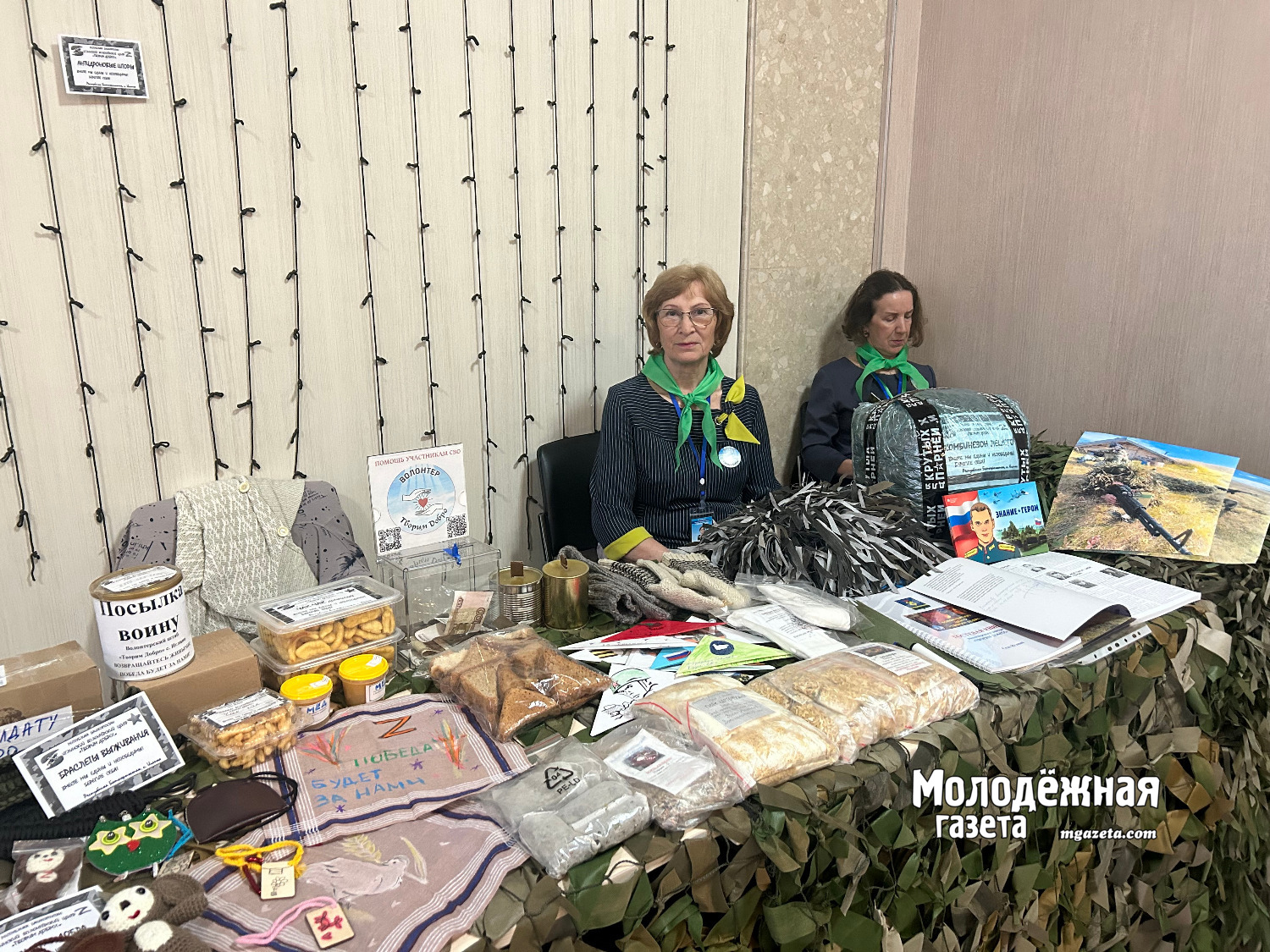 Еще одна экспозиция посвящена добровольческой деятельности жителей Башкортостана. Так, например, Иглинский волонтерский центр «Творим добро» регулярно поставляет на фронт так необходимые в быту бойцам вещи – одежду, консервы, окопные свечи, маскировочные сети и многое другое.